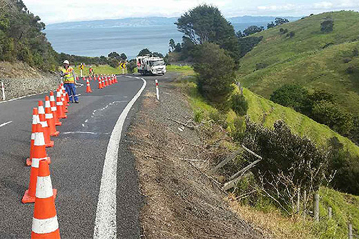 The NZ Transport Agency advises motorists to expect delays on State Highway 25 just south of Coromandel Township due to a slip below the road.