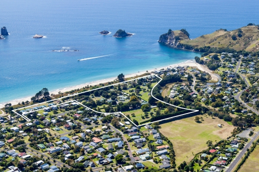 The Hahei Holiday Resort (outlined in white) has been sold to a group of New Zealand investors for $13.25 million. The sale is now unconditional and settlement will occur on October 1. Photo: Supplied