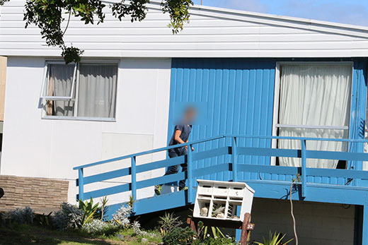 When SunLive visited the property, there were about six people standing on a balcony talking. A tarpaulin draped down from the balcony, and tables, chairs and a brazier were set up in the driveway. However, none of the residents wanted to comment.