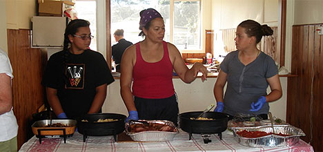 The girls from Maketu surf lifesaving club serving breakfast.