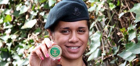 Merehine Waiari, 19 was awarded the Warrant Officers Coin at her recent basic training. Photo by Tracy Hardy.