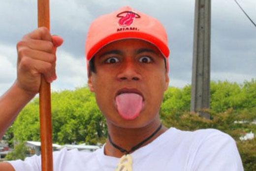 'I just happened to have a taiaha in my hand. I've never done this before, I just thought it was funny cause all my family was up on the deck.