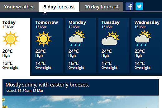'This means plenty of sunshine up in Auckland for those enjoying the Pasifika Festival. The weather's not looking too bad for the Taranaki Anniversary weekend either, but the locals can expect a bit of cloud, and possibly a few showers on Sunday and Monday.”