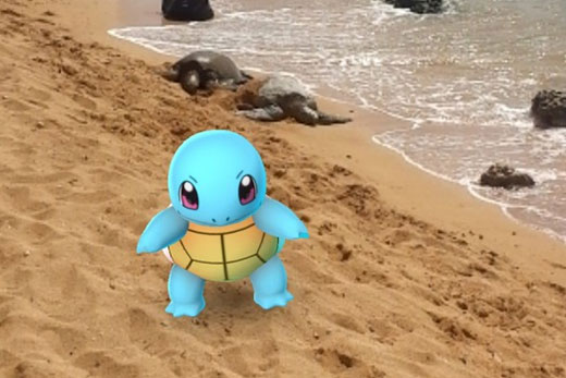 A squirtle pops up near a pair of his real world inspirations. Image: imgur