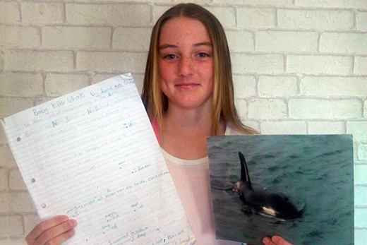 Tauranga's Alana Griffin, 11, penned a heartfelt story inspired by the life and death of Tama the baby orca. Supplied Photo.