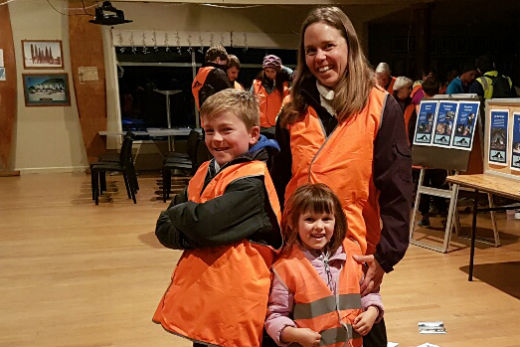 Anika Burgess with her children Francis and Ayana, getting ready to go on the night tour. Photo: Rosalie Crawford.