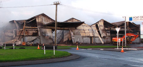 There was about 8000 tonnes of palm kernel in the J Swap warehouse at the intersection of Hull Road and Totara Street which was destroyed in this morning's fire.