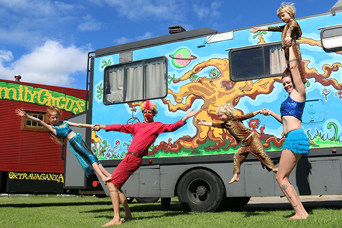 Mum Anna, dad Royce, daughter Dylan, 10, and twins Dallas and Jaz, 4, make up the Ashton Family Circus, part of this weekend’s Extravaganza at Blake Park.