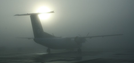 A thick blanket of fog covered the town, forcing flights to be delayed or cancelled.