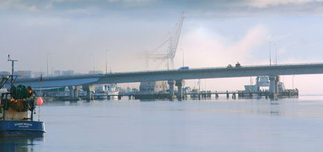 Fog lifting at the harbour bridge this morning. Photo: Bruce Barnard.
