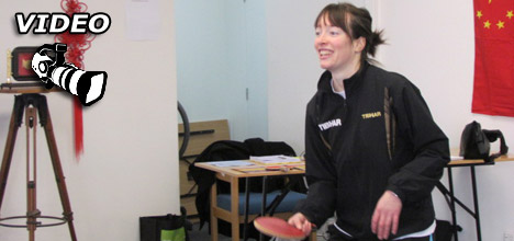 Priority One projects analyst Michelle McCarthy shows her skills in that most Chinese of activities – table tennis.