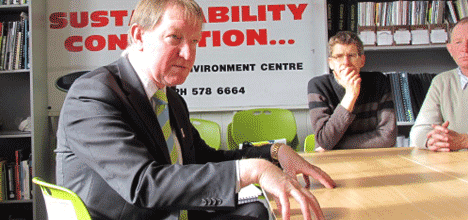 Environment Minister Nick Smith talks with Tauranga Environment Centre trustees during a visit to the city last month.