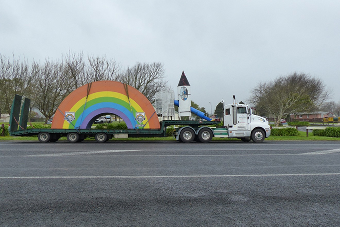 Rainbow's End was looking for a new home for their iconic entrance way rainbow and looked at several towns, including Waihi, ‘New Zealand's Heart of Gold'. They contacted Hauraki District Mayor John Tregidga, who got in touch with GO Waihi Coordinator Brian Gentil. Now Victoria Park, or Rocket Park as locals know it, is the new home for this bright, attention-grabbing structure.