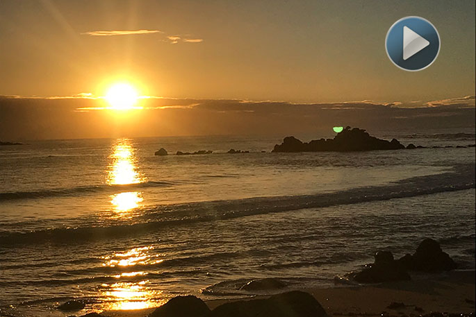 High tide is at 1.10pm and low tide at 7.10pm. There's a sea swell of 0.4m, sea temperature is 22 degrees and sunset tonight is at 8.01pm.