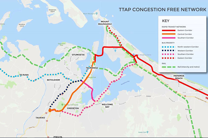The core of the TTAP proposal is a congestion free transport network which will make it faster and cheaper to get around the city by public transport, says Greater Tauranga spokesperson Heidi Hughes. The goal is for travel by public transport between central Tauranga, Greerton, Hairini, Poike, Mount, Arataki, Papamoa and Omokoroa to be cheaper and faster than by car at peak times.