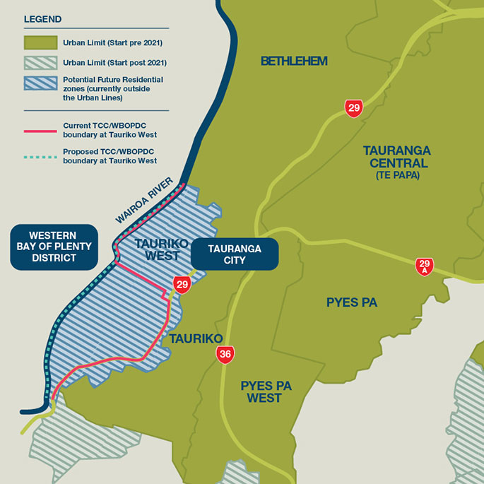 Altering the boundary is part of an initiative between the Western Bay of Plenty District Council, Tauranga City Council, Bay of Plenty Regional Council and the New Zealand Transport Agency to provide for urban development at Tauriko West.