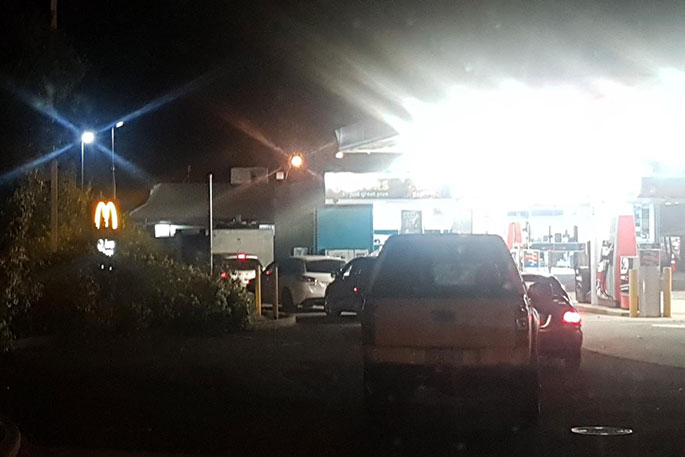 A photo sent to SunLive at 5.45am, show a large line at the drive-thru at MacDonalds in Greerton this morning.