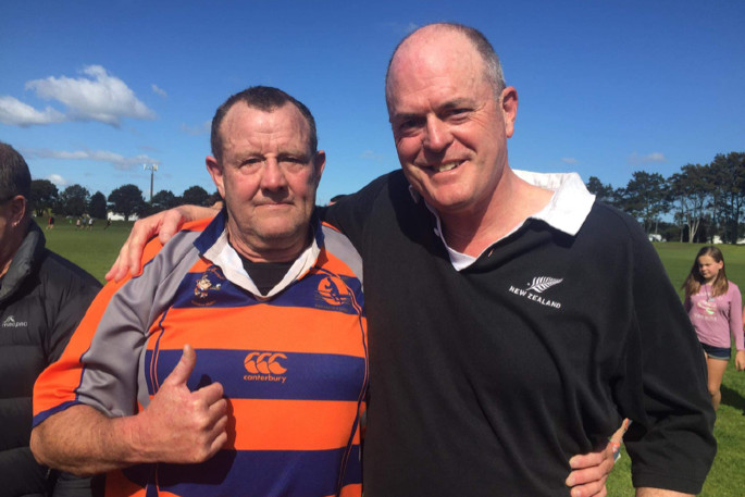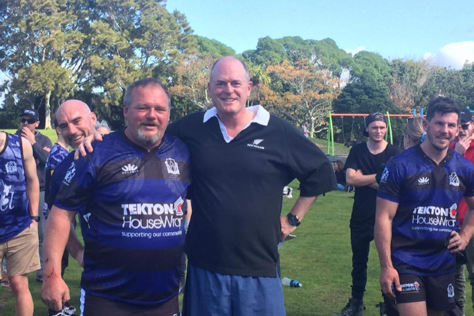 Todd Muller with the Papamoa Potbellez Golden Oldies and Te Puna rugby teams.