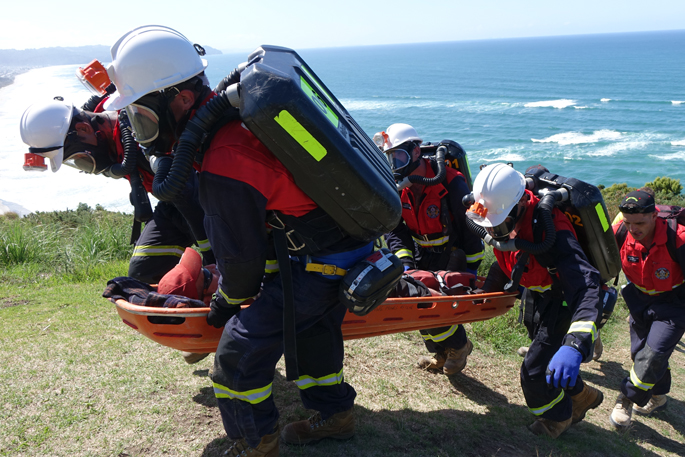 OceanaGold's Mines Rescue Team have it harder than most because they use a 14kg long duration closed circuit breathing set which means the air is recycled so it gets hotter as they run.