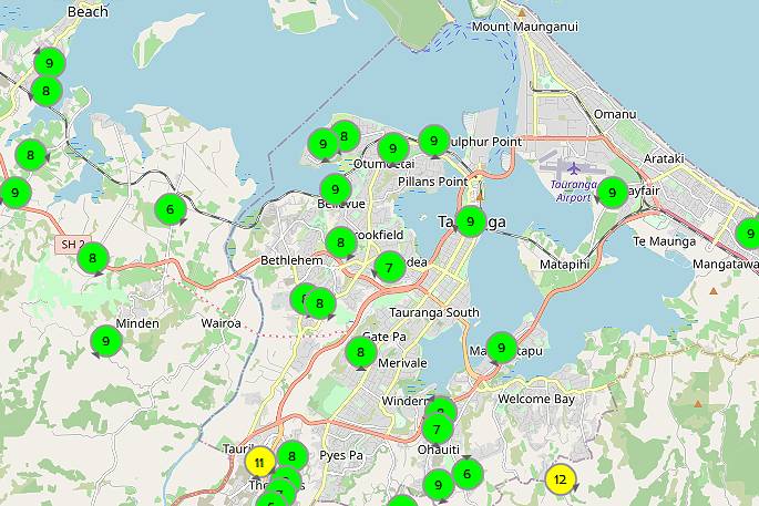 Single digit temperatures have also been recorded in Tauranga, with 6C, 7C, and 8C being observed around the city.