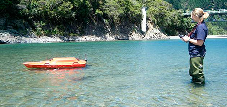 Scientists are using a remote-controlled miniature speedboat to gauge river flows in New Zealand's rivers, including those in the Bay of Plenty.