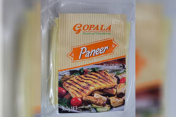 - Gopoala brand paneer cheese sold in packets of various weights between 300g and 1kg