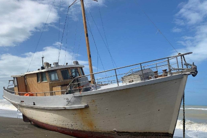 The San Rosa washed ashore on Good Friday. Photo: NZ Police.