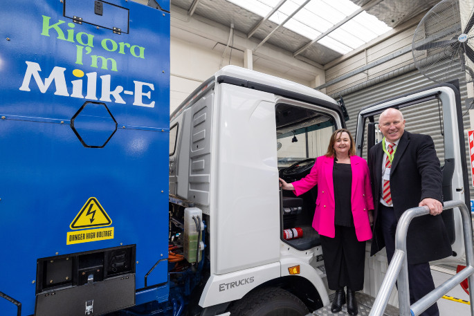 New Zealand's first electric milk tanker, Milk-E, has been officially launched by the Minister for Energy and Resources, Hon. Dr Megan Woods, in Morrinsville.