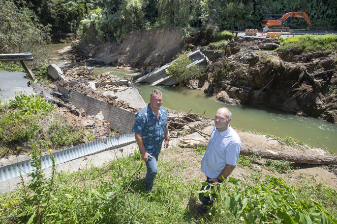 A bridge over Raparapahoe Stream on No 4 Road washed out on January 29 after severe weather, affecting the 30 properties above it.