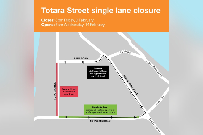 The Council is expecting major traffic delays and severe congestion on Monday and Tuesday following the unexpected closure of a section of State Highway 29A near Oropi for emergency work, combined with an unavoidable lane closure on Totara Street, as both are major routes in and out of Mount Maunganui.