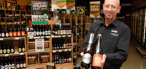 Liquorland manager John Campbell shows two of the beers available for tasting at tonight's craft beer festival.