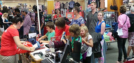 Hallensteins in Grey Street was packed with shoppers earlier.