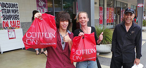 Hayden Saxton, Kathie and Bryan happy with their bargains at Fraser Cove.