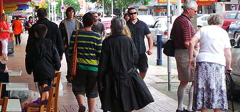 In Grey Street Hallensteins Tauranga manager Zinnia Woodruffe says downtown Tauranga is 'very busy” today.