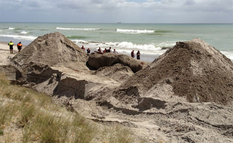 People gathered to watch the burial of the sperm whale at Papamoa Beach today.