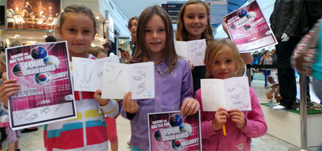 (From left) Shanaye Hine, 8, Amelia Brown, 8, Jada Hine, 10, and Montana Hine, 5, with their autographs from the Black Sticks signing session at Bayfair this afternoon.
