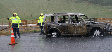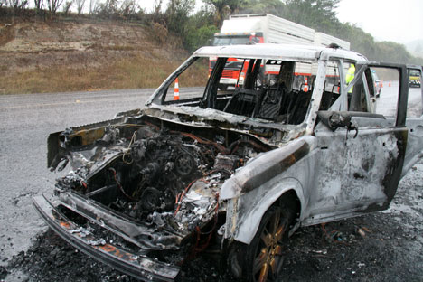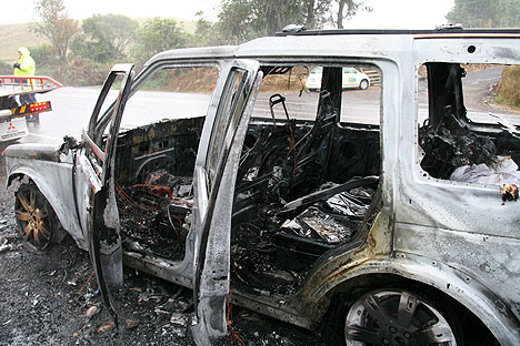 A Land Rover Discovery was completely destroyed by fire on Tuesday afternoon near the top of the Kaimais.