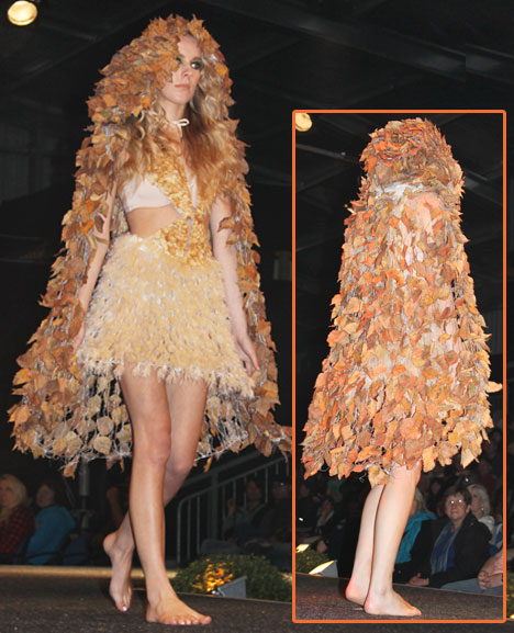 Cindy Mac, formerly of Tauranga, used dried flowers and leaves in her autumn-themed AgArt Wear design.