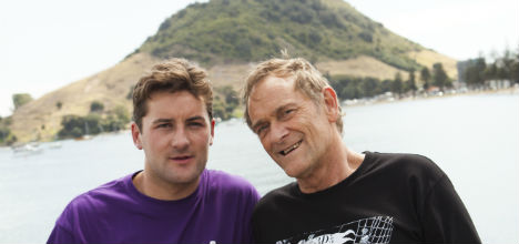 Emmett Skilton and Stuart Devenie during filming at Mount Maunganui.