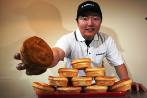 | Tauranga pie maker Patrick Lam (centre) win this year's award for New Zealand's supreme pie. |