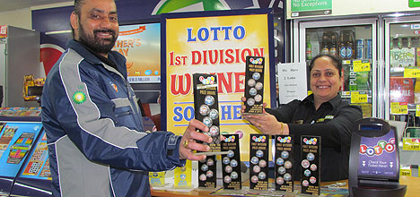 Bethlehem Four Square and Lotto owners Harpreet and Raj Gill are waiting to check the tickets of the two lucky First Division winners. Photo: Zoe Hunter.