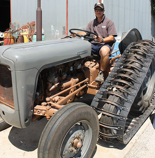 Among John's tractors is a Ferguson halftrack, which has caterpillar-like tracks on four of its six wheels, giving it the ability to work in conditions where other tractors can't.