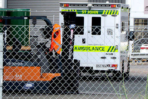 St John Ambulance in the yard of a Mount Maunganui business where a woman was injured.