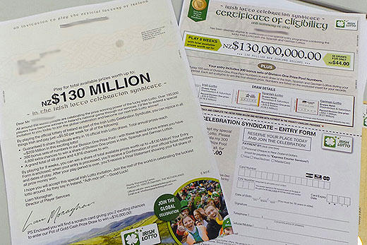 An invitation sent to a Tauranga resident to play the Irish Lotto.