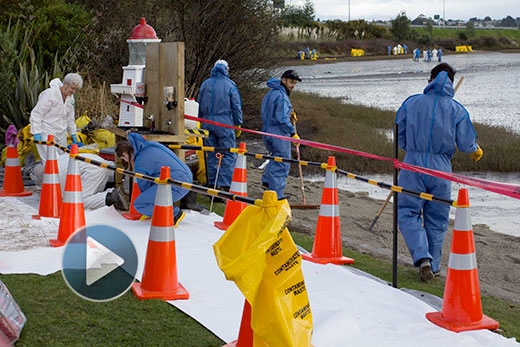 There are other smaller areas of oil at Rat Island, most of which is trapped in vegetation and is being removed as quickly as possible. A sucker truck is continuing to remove oil from around the Bridge Marina.