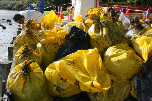 Some 12 tonnes of oily waste has been collected so far. Photos: Supplied.