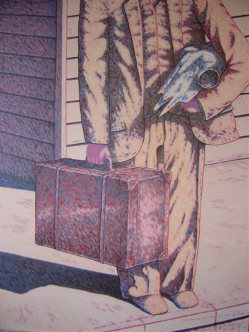 The anonymous man carrying his history under one arm is on a platform ready to embark on a journey. Does the suitcase he also carrys show us that we only need a few possessions and it is possible to jettison much of the physical and psychological clutter we accumulate in our lives ? Stuff that may hold us back from moving forward to better things.