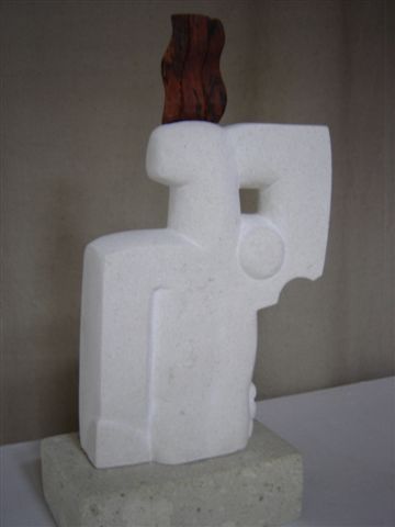 The vertical wooden hair coming from the limestone symbolises the energy between the earth and the universe and the spiritual dimension of their role.