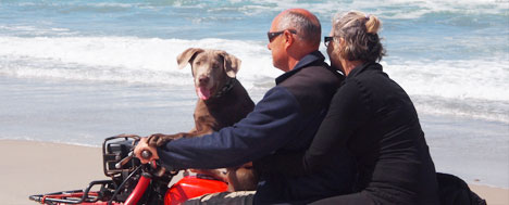 First challenge of the mission, apart from getting a good seat on the boat, was to learn to ride a quad bike. Crikey, I've only just managed the family station wagon. Never mind, I soon sorted out the easy way to cruise the coastline, without having to figure the gearshift: Get Uncle Pete to drive.