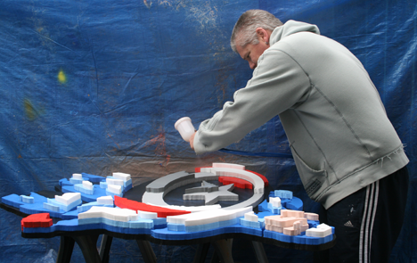 Many people are familiar with Keith's striking creations made from polystyrene foam. He often uses different coloured layers of polystyrene to skilfully build up the image.
